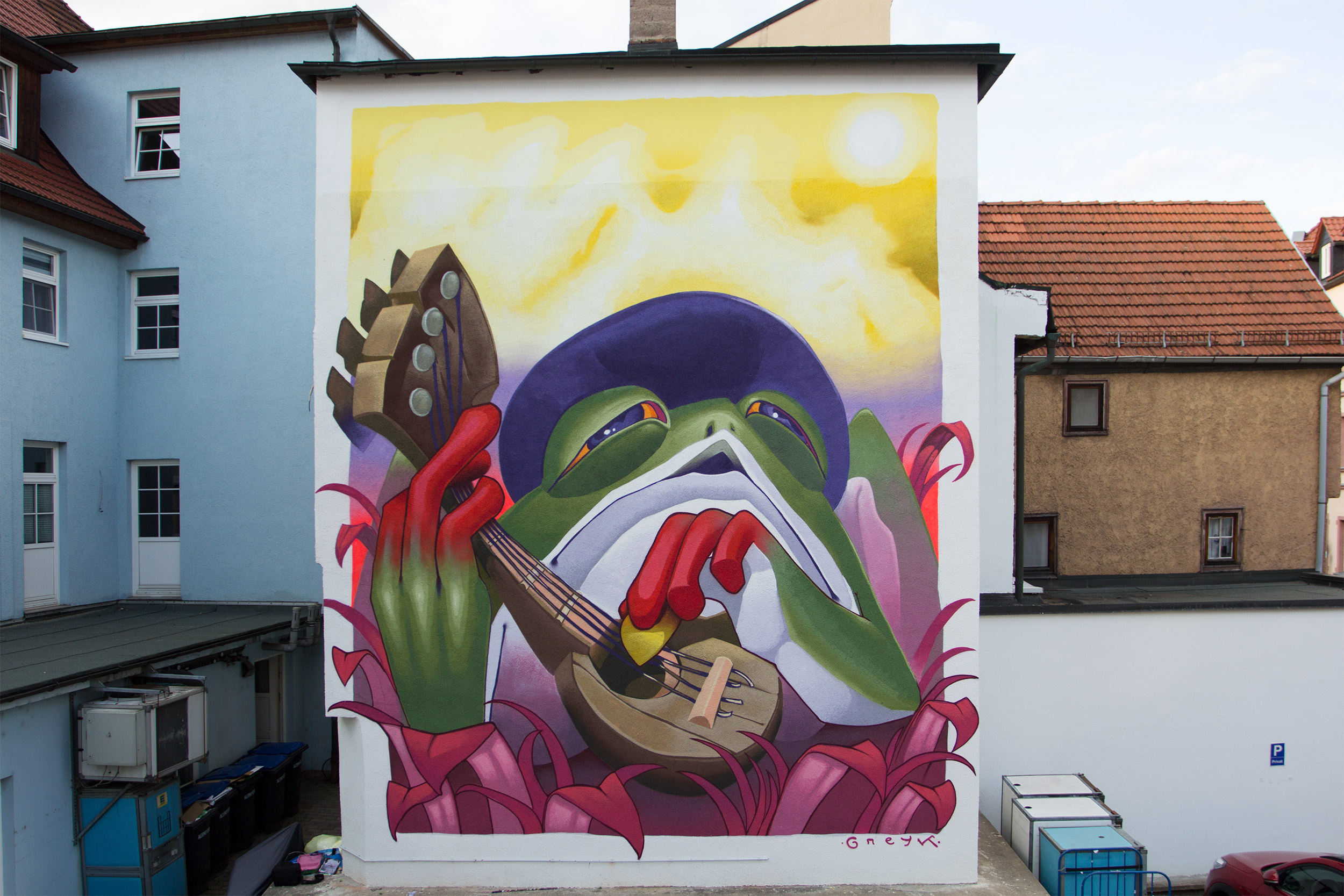 Das Bild von GREYK (Jose Villanueva) entstand 2021 im Rahmen des Projektes „Gegen das Vergessen“ im Rahmen des Themenjahres 1700 Jahre Jüdisches Leben in Deutschland und 900 Jahre Jüdisches Leben in Thüringen.